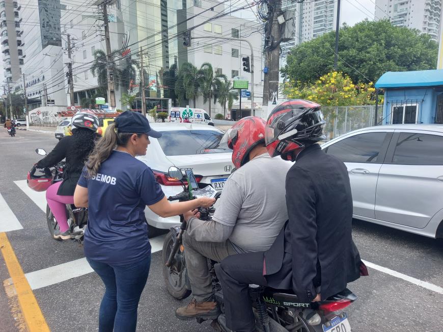 Ação educativa orienta sobre nova sinalização na avenida Visconde de Souza Franco nesta sexta-feira, 4