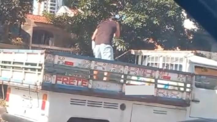 Motorista flagrado descartando entulho na via pública é preso por crime ambiental